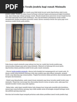 Salah satu keunggulan dari teralis jendela minimalis yang satu ini adalah kamu bisa memadu padankan dengan warna tirai yang kamu suka. Desain teralis jendela minimalis ini sangat cocok dipasang pada rumah rumah yang menggunakan desain interior dengan dominasi warna putih. Dari 20 desain jendela rumah minimalis salah satu yang paling sering kita temui adalah desain jendela yang dilengkapi dengan teralis. Ada baiknya sebelum anda memesan kepada penyedia jasa furniture untuk membuat teralis jendela ada beberapa hal yang perlu diperhatikan supaya ketika sudah dipasang teralis bisa berfungsi sebagai ornament interior sekaligus pengaman rumah anda.